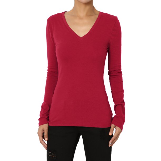 Themogan Themogan Women S Basic Plain Solid V Neck Long Sleeve Tee Cotton Fitted T Shirts Walmart Com Walmart Com