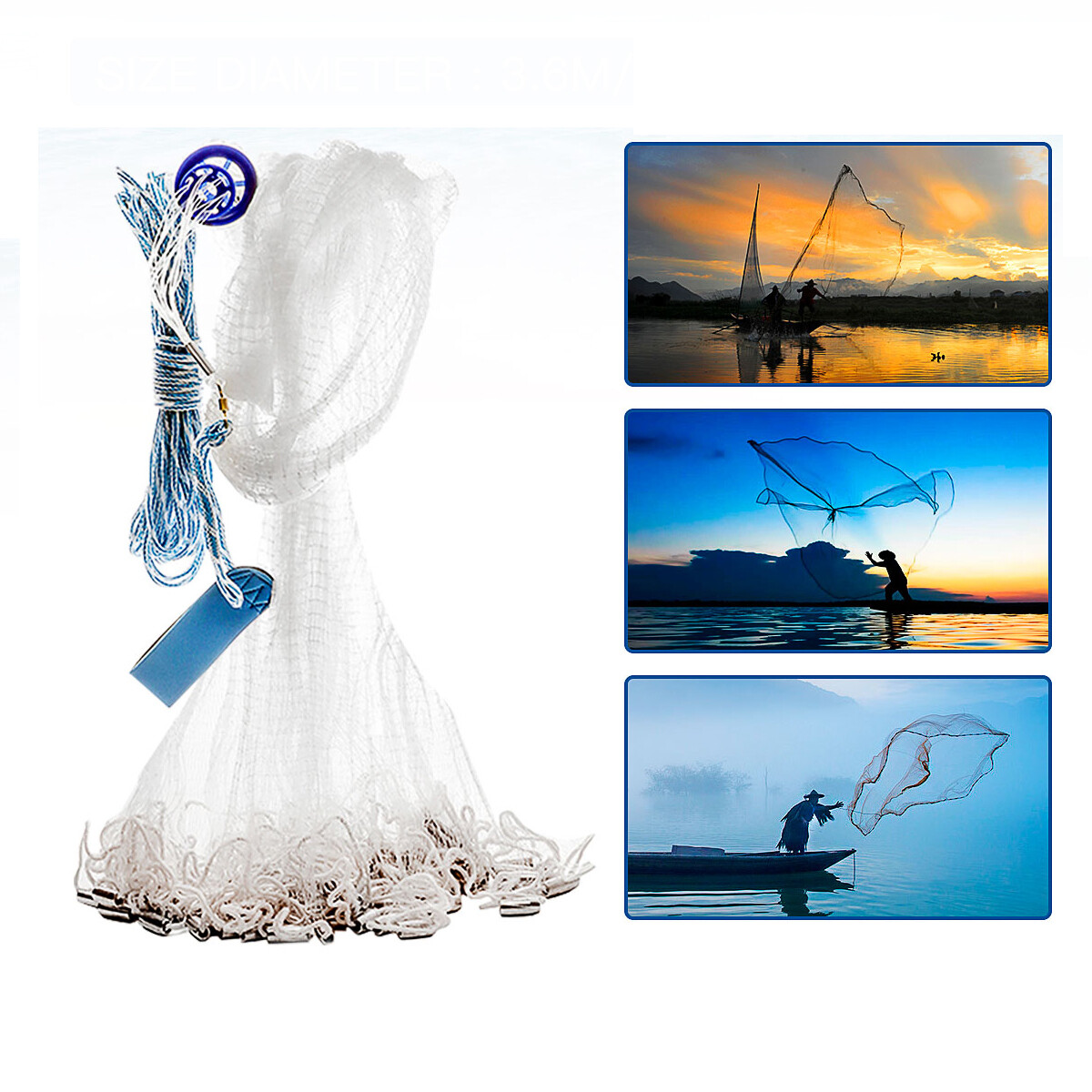 12ft 3 6m Throw Cast Net Mesh Saltwater Bait Fish Casting Net With Real Sinker Ebay