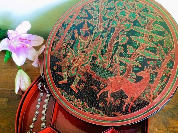 Indian Jewelry Box With Shiva Deer Mughal Lacquer Sweetmeat Etsy