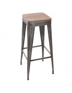 Tabouret De Bar Carre En Metal Noir Et Bois Wadiga Com