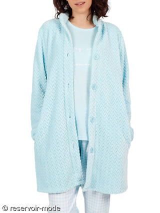 Robe De Chambre Polaire Enjoy Vichy Bleu Reservoir Mode Lingerie Femme Et Homme