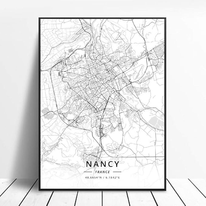 Amazon Com Print On Canvas Nancy France Black And White City Art Canvas Poster Modern Simple Retro Art Latitude Longitude Picture Home Decoration Hd Print Poster For Living Room Bedroom No Frame 70 100cm Furniture