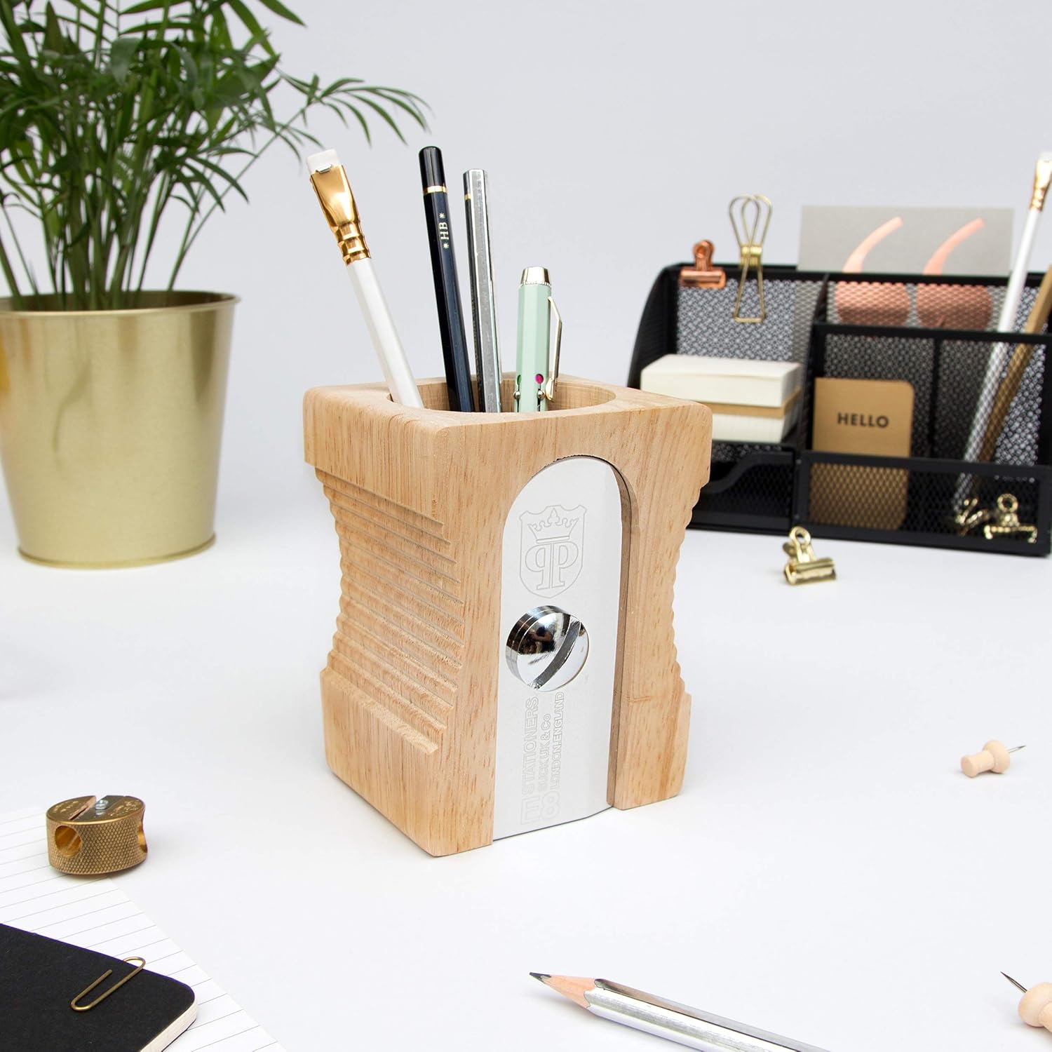 Suck Uk Pot A Crayons Design Taille Crayons Geant Beige Et Chrome Bois Et Metal Acier Inoxydable Amazon Fr Fournitures De Bureau