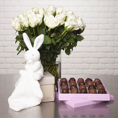 Si tout le monde ne peut pas offrir un tel présent, un magnifique bouquet de fleurs de naissance sera également un joli geste et fera tout autant plaisir !. Aquarelle vous propose le cadeau de naissance parfait en associant un magnifique bouquet de 50 roses blanches AKITO, un coffret bleu de délicieux rochers enrobés de chocolat d'Equateur au praliné et un adorable doudou ours en velours de la marque Doudou et Compagnie (taille du doudou 10 cm) pour présenter vos plus chaleureuses félicitations !. Un bouquet de naissance pour chaque mois de l’année Les fleuristes sont passés maîtres dans l’art de concevoir d’adorables bouquets de naissance Ces professionnels se feront un plaisir de vous conseiller afin de choisir les variétés qui plairont à la nouvelle famille.