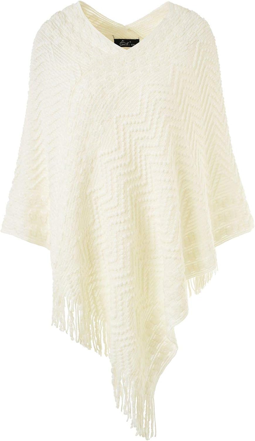 Ferand Elegant Pull Poncho Cape Femme Tricot Avec Rayures En Chevron Et Franges Taille Unique Blanc Amazon Fr Vetements Et Accessoires
