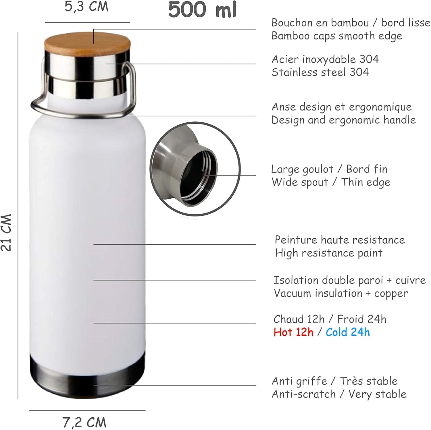 Qwetch Bouteille Isotherme Personnalisee Gravee En Inox 750ml Maintient Vos Boissons Au Chaud Pendant 12 Heures Et Au Frais Pendant 24 Heures Bpa Free Blanc Amazon Fr Cuisine Maison