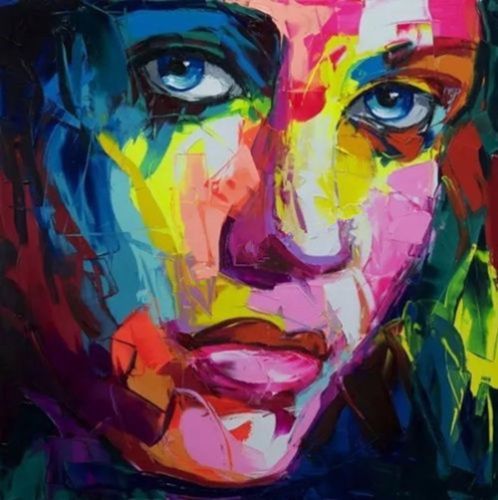 Peinture Sur Toile Au Couteau Visage Femme Tableau Carre