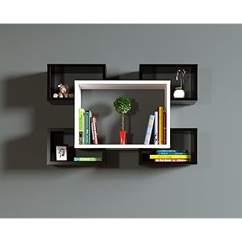 Racky Etagere Murale Blanc Noir Etagere A Livres Pour Decoration De Salon En Bois Dans Un Design Moderne Amazon Fr Cuisine Maison