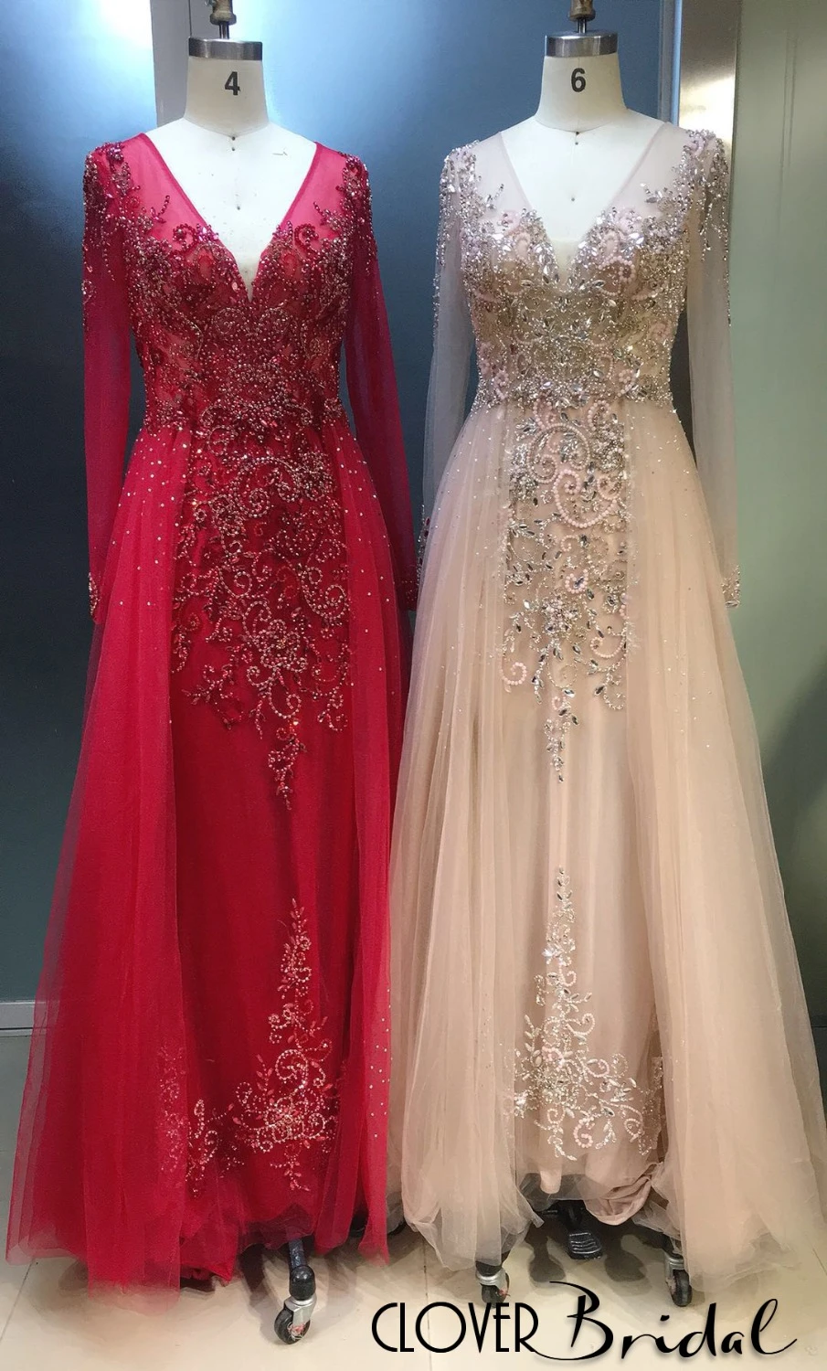 Luxuriance Manches Longues A La Robe Rouge Soiree Longue Femme 18 V Neck Long Sleeves Tulle Evening Dress With A Line Outskirt Evening Dresses Aliexpress