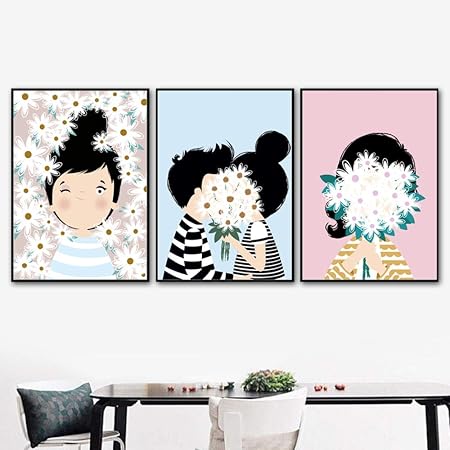 Tableau Mural Kawaii Pour Fille Et Garcon Motif Floral Nordique 60x80 Cm No Framed Amazon Fr Cuisine Maison