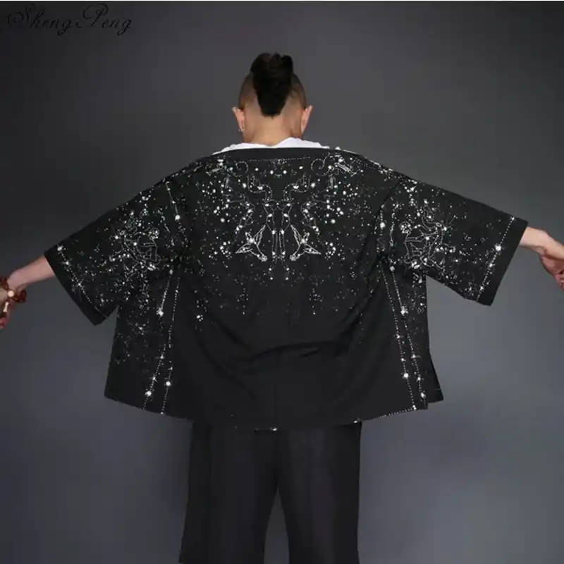 Acheter Style Japonais Kimono Mode Cardigan Hommes Trois Quarts Manches Trench Coat Chinois Vetements Traditionnels Lache Polyester Homme Tops De 17 03 Du Hongzhang Dhgate Com
