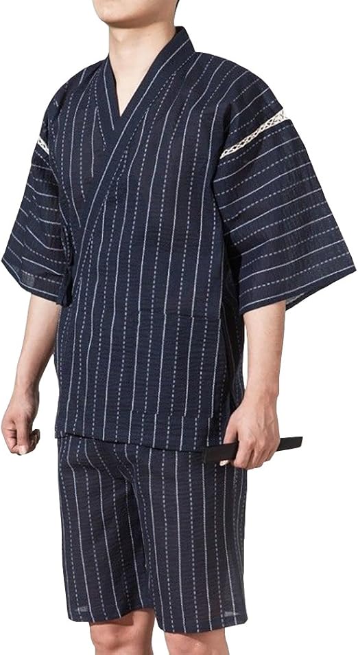 Yukata Jinbei Kimono Traditionnel A Rayures Pour Homme Amazon Fr Vetements Et Accessoires