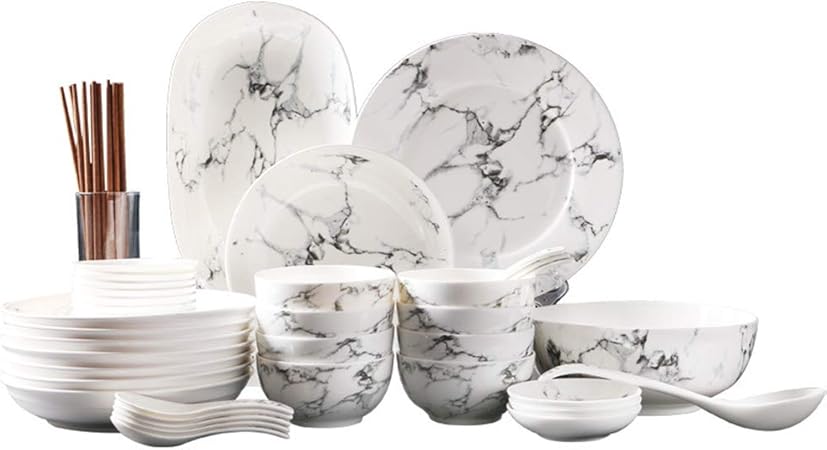 Xcxdx Service De Table En Porcelaine Motif En Marbre Chic Vaisselle Ronde En Ceramique Saine 36 Pieces Amazon Fr Cuisine Maison