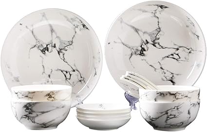 Xcxdx Service De Vaisselle En Marbre En Marbre Service De Table 14 Pieces Gris Blanc Amazon Fr Cuisine Maison