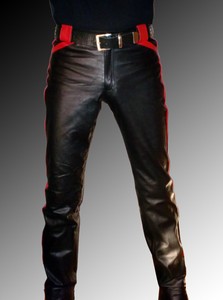 Pantalon Cuir Homme Noir Rouge Designer Leather Trousers Lederhose Neu Schwarz Ebay