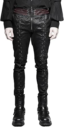 Pantalon Homme Noir Et Rouge Imitation Cuir Avec Lacages Vampire Gothique Rock Amazon Fr Vetements Et Accessoires