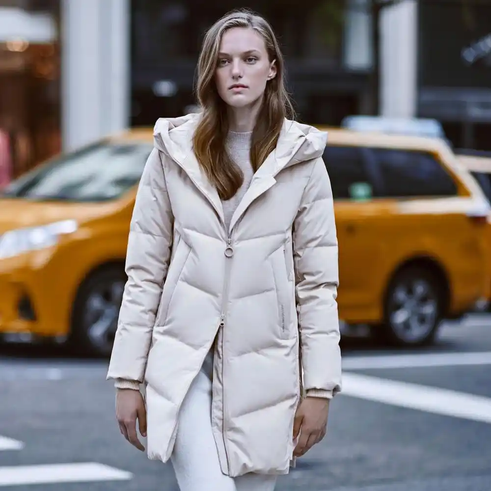 Femme Slim Veste A Capuche Manteau Parka Chaud Epaissi Mi Longue Doudoune