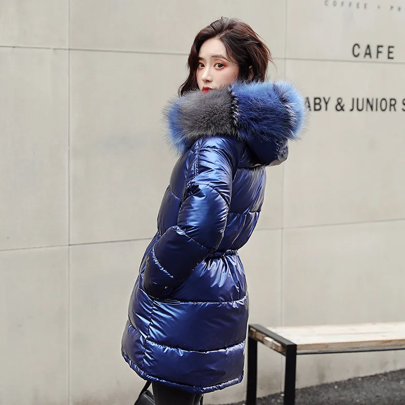 Blouson En Duvet Argente Brillant Mi Long Grand Manteau A Capuche Avec Col En Fourrure Colore Pour Femme Tendance Chaud Hiver Aliexpress