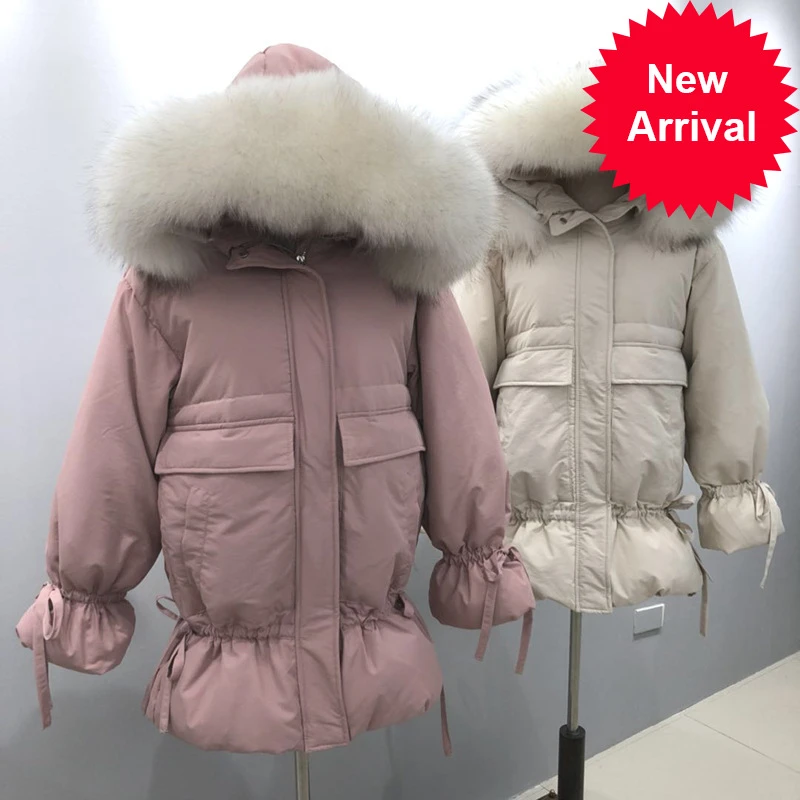 Raccon Grand Vrai Col En Fourrure Hiver Manteau Femmes Mi Long Vers Le Bas Parka Femme Canard Doudoune Femmes Lache Chaud A Down Coats Aliexpress