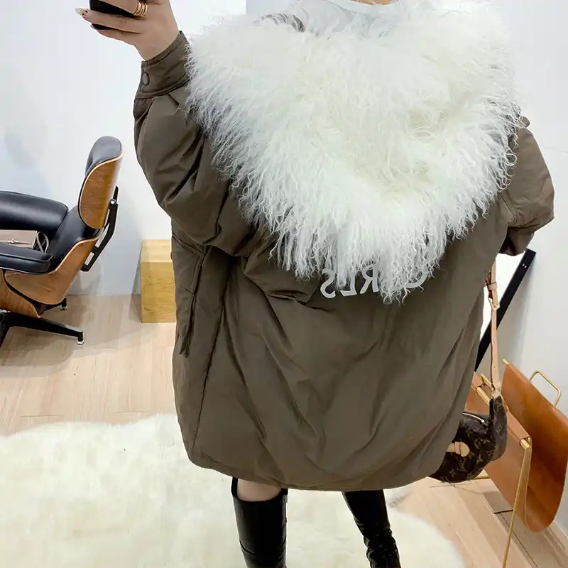 Luxueux Mouton Plage Laine Fourrure Col Blanc Canard Doudoune Manteau Femmes Hiver Chaud Epais Parka Veste A Capuche Ample Mi Longue Aliexpress