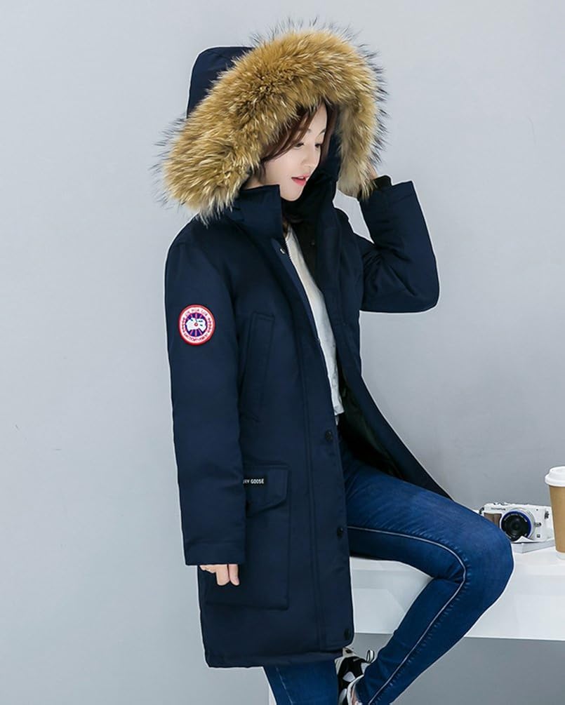 Acheter Femme Plein Air Mi Longueur Veste Vers Le Bas Epais Manteau Chaud Long Down Jacket Thicken Fourrure Capuche Manteaux Femmes Duvet Doie De 1 93 Du Fashionfirst Dhgate Com