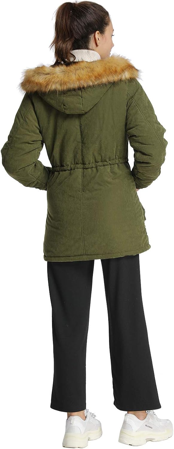 Youjia Femme Chaud Hiver Parka Mi Longue Militaire Fausse Fourrure Capuche Veste Manteau Blouson Manteaux Vetements
