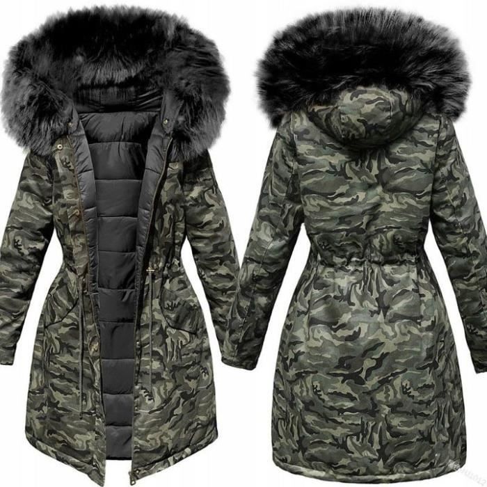 Camouflage Manteau Femme Mi Long Capuche Fausse Fourrure Slim Fit Chaud Hiver Noir Achat Vente Manteau Caban Soldes Sur Cdiscount Des Le Janvier Cdiscount