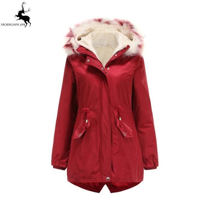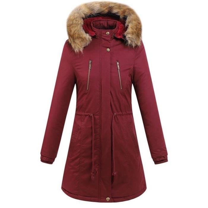 Boutique Hugo Hiver Chaud Manteau Mi Longue Femme Capuche Fausse Fourrure Epais Parka Femme Avec Capot Amovible Rouge Achat Vente Parka Soldes Sur Cdiscount Des Le Janvier Cdiscount