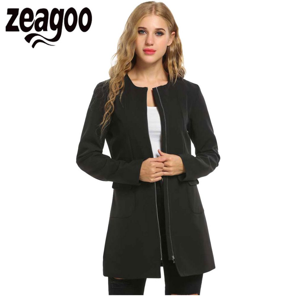 Acheter Zeagoo Femmes Veste Gaine Manteau O Cou Solide Fermeture Eclair Mi Long Veste Automne Hiver Manteau Chaud De Haute Qualite Survetement Avec Des Poches De 41 29 Du Prime04 Dhgate Com