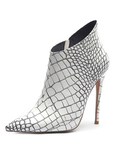 Bottines En Simili Cuir Blanc A Petit Talon Aiguille