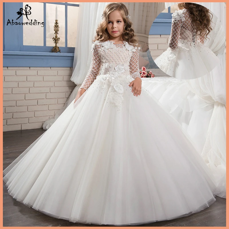 Robe Petite Fille D Honneur With Florals Long Sleeve Flower Girls Dresses White Girl First Communion Dress Kids Pageant Princess Girl Communion Dress Girl First Communion Dressgirls Communion Aliexpress