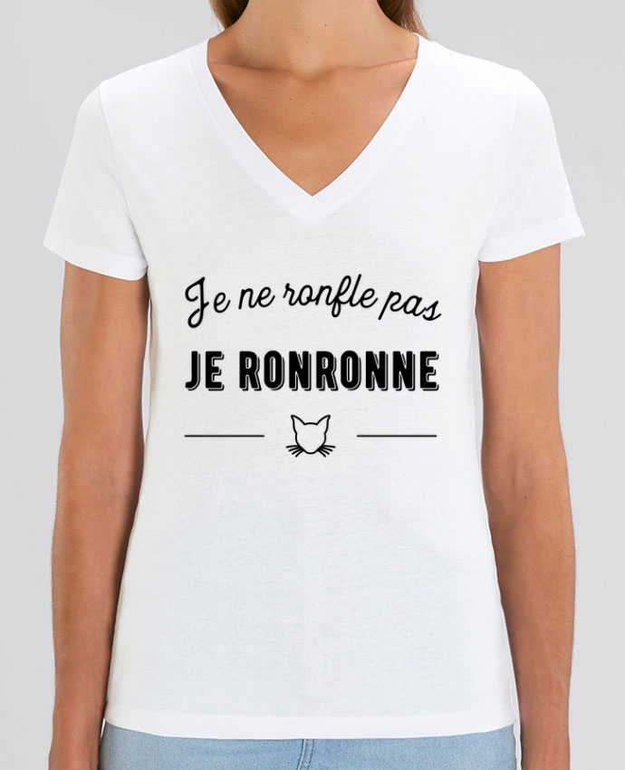 Tee Shirt Femme Col V Stella Evoker Je Ronronne T Shirt Humour Coton Bio Tunetoo