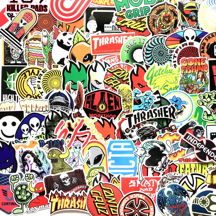 Autocollant Logo De Marque A La Mode 100 Pieces Autocollant Carte De Rue Carnet De Planche A Roulettes Decoration Graffiti Autocollant De Bicyclette Moto Guitare Aliexpress
