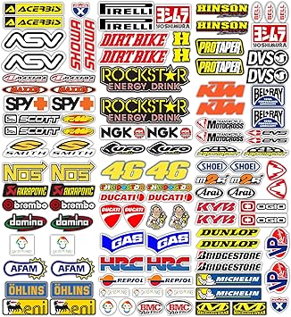 Amazon Fr Mas Di Vitale Maria Ditta Individuale Moto Autocollants Sponsor 113 Pcs Autocollant Motocross Graphiques Velo Vtt Ordinateur Scooter Kit Modele Faire Vinyle Brillant Celebre Marques Pack 36x33 Cm