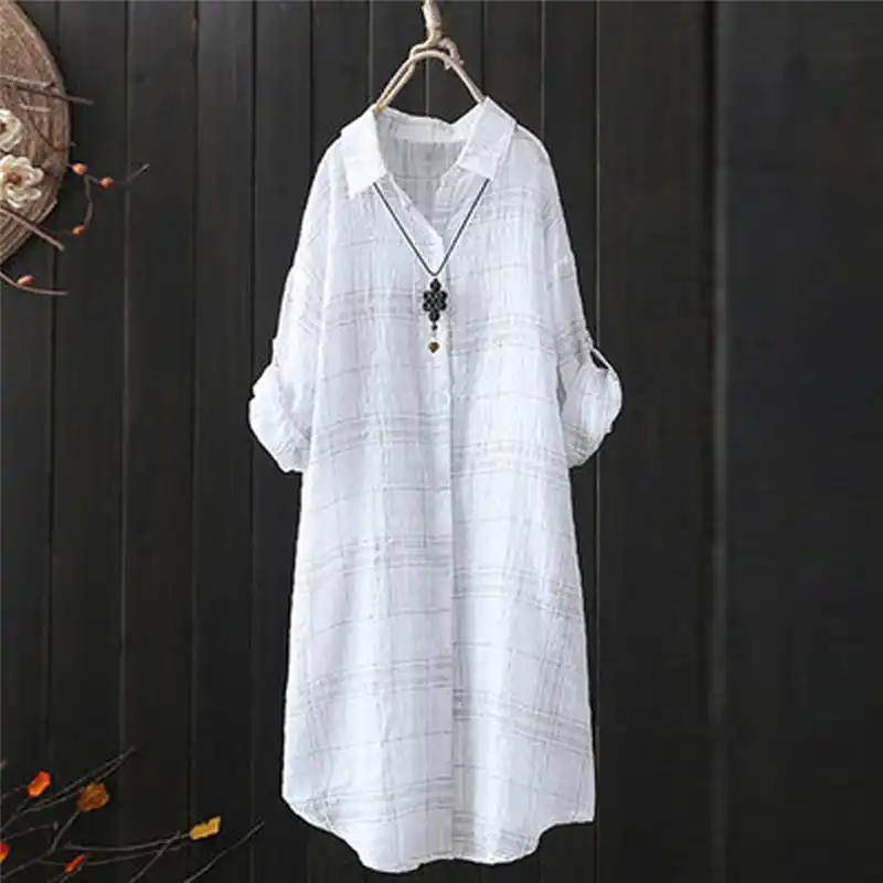 Chemisier Tunique Femme Ronde Grande Taille En Coton Manche Longue