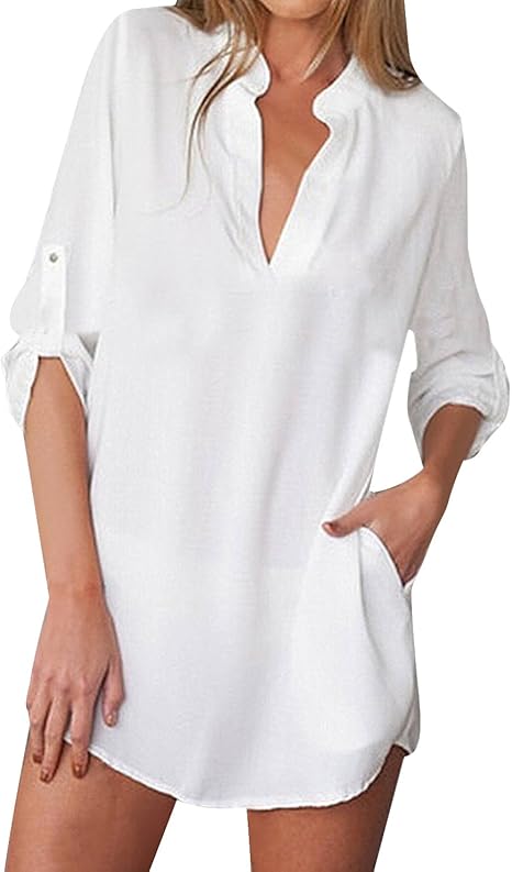 Yidarton Mode Tunique Femme A Manches Longues Casual Robe Chemise Longue