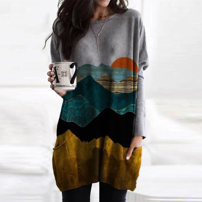 Tunique Femme Pull A Manches Longues Imprime Montagne Grande Taille Multicolor Achat Vente Tunique Femme Pull A Manches Cdiscount