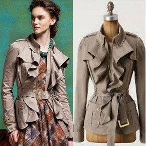 Elevenses Anthropologie Femme Trench Jacket Beige Ruffle High Quality Belted M 8 Ebay