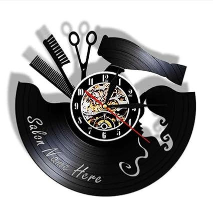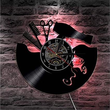 Wwwff Horloge Murale En Vinyle Salon De Beaute Er Disque Vinyle Horloge Murale Salon De Coiffure Coiffeur Outils De Coiffure Peigne Ciseaux Signe De Mur D Affaires Amazon Fr Cuisine Maison