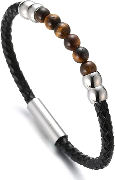 Men S Leather Bracelet Tiger Eye Stones Magnum