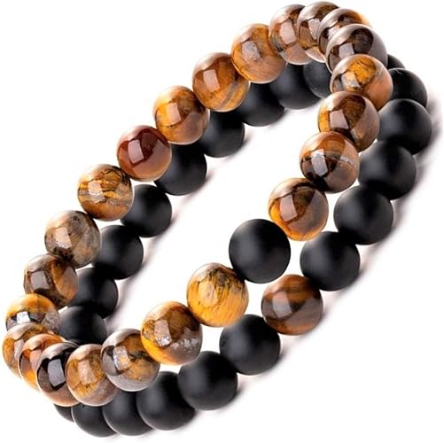 Be Happy With Happy Products Paire De Bracelets Homme Femme Couple Zen En Perle De Pierre Naturelle Onyx Et œil De Tigre Garantie 24 Mois Amazon Fr Bijoux
