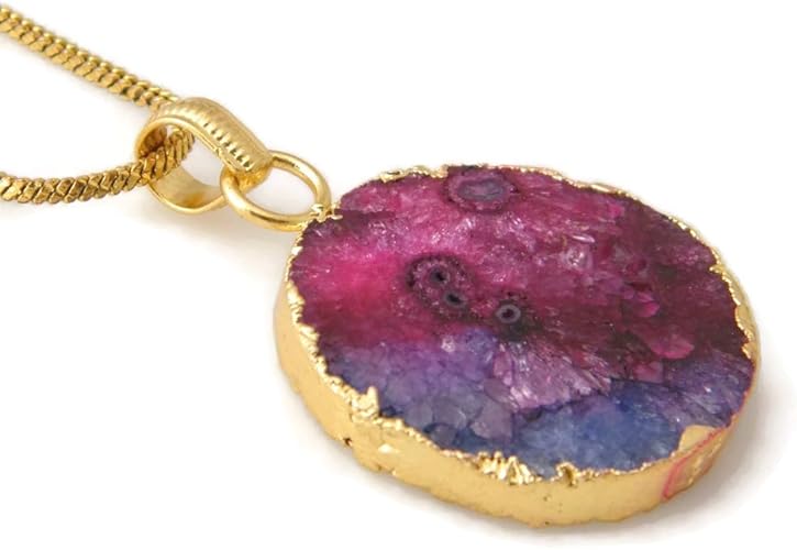 Solaire Pendentif Agate Collier Multi Couleur Pierre Precieuse Pendentif Avec Chaine Collier Pendentif Plaque Or Fait A La Main Ah 7044 Amazon Fr Bijoux