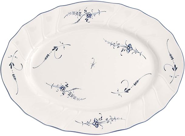 Amazon Com Villeroy Boch Vieux Luxembourg Oval Platter 14 In White Blue Platters