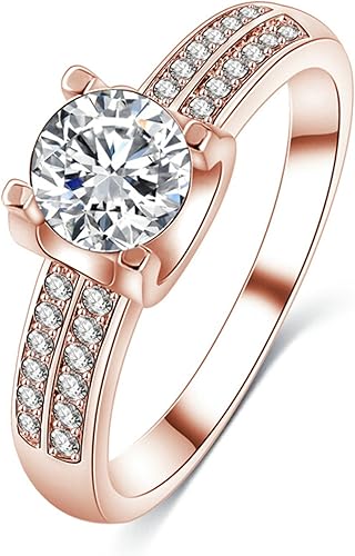 Coniea Bagues Femmes Zirconium Bague Plaque Or Rose Bague Femme Or Rose Rond Bagues Amazon Fr Bijoux