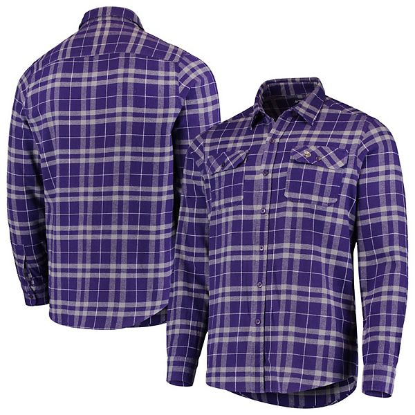 Men S Antigua Purple Gray Minnesota Vikings Stance Flannel Button Up Long Sleeve Shirt