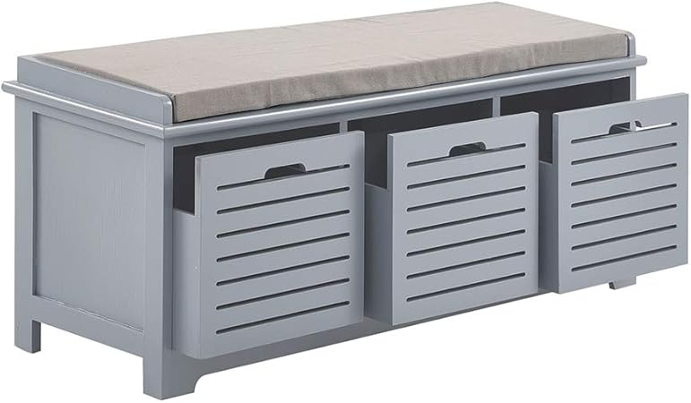 Sobuy Fsr65 Dg Banc De Rangement Avec Coussin Rembourre Et 3 Paniers Meuble Bas Entree Commode A Chaussure Banquette Confortable