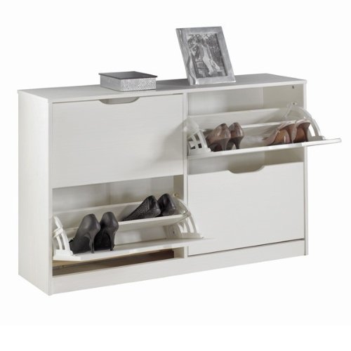 Meuble A Chaussures Basil Armoire Avec 2 X 2 Abattants Rangement Pour 24 Paires En Pin Massif Lasure Blanc Et Brun