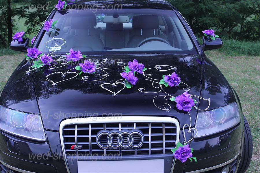 Decoration Voiture De Mariage Fleurs Mauve Ivoire