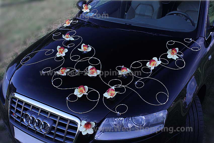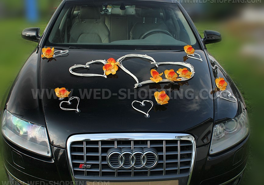 Decoration Voiture Mariage Orchidees Oranges Et Coeurs Blancs