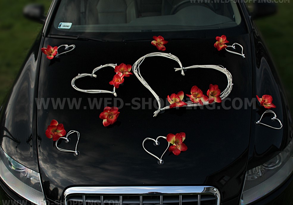 Decoration Orchidees Rouges Et Coeurs Blancs Voiture Mariage